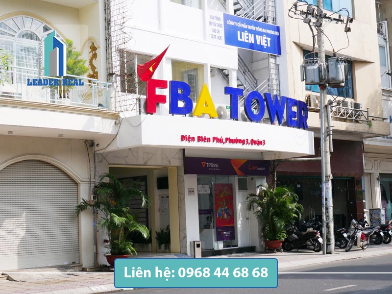 Cao ốc văn phòng FBA Tower là một trong những văn phòng cho thuê hạng C, địa chỉ nằm trên đường Điện Biên Phủ, Phường 3, Quận 3, TPHCM. Tòa nhà có mặt tiền rộng rãi, kiến trúc sang trọng, nhờ đó luôn nổi bật trong chuỗi văn phòng cho thuê trên đường Điện Biên Phủ quận 3 uy tín và chất lượng. Bên cạnh đó, kết cấu 11 tầng giúp cao ốc đem đến 2.000m² diện tích cho thuê, hứa hẹn cung cấp văn phòng có không gian, giá thuê phù hợp cho những công ty đang tìm kiếm văn phòng tại quận 3. Chính vì thế, tòa nhà FBA Tower được nhiều doanh nghiệp đang hoạt động trong lĩnh vực: Công nghệ thông tin, Phần mềm, Chứng Khoán, Tư vấn tài chính, Kiểm toán lựa chọn làm Văn phòng đại diện.