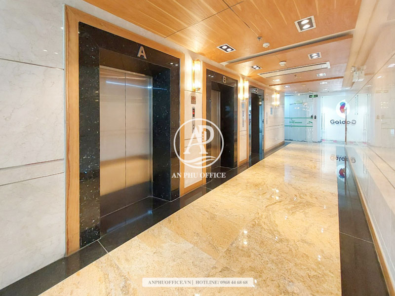 Khu vực sảnh tầng trệt được hoàn thiện bằng vật liệu đá – gạch men màu vàng gold và tông màu trung tính, mang đến cảm giác trang nhã, đúng tiêu chuẩn của văn phòng trung tâm. Hệ thống thang máy, hành lang và khu vệ sinh được thiết kế để đảm bảo lưu thông mạch lạc, an toàn và duy trì mức độ tiện nghi cao.